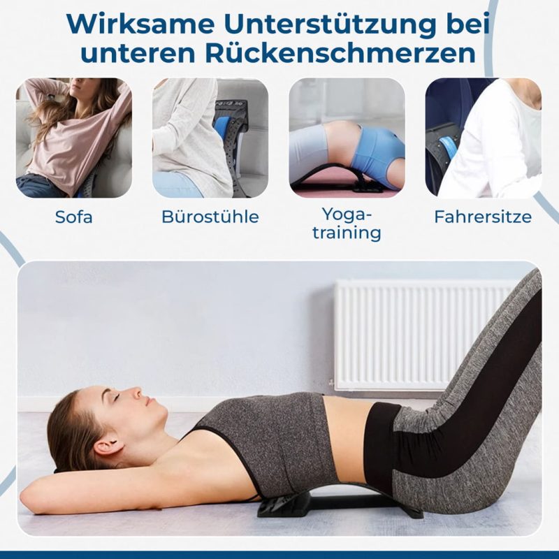 Durch die Kombination aus Streckung, Dekompression und Akupressur bringt er deine Wirbelsäule wieder in eine gesunde Position.