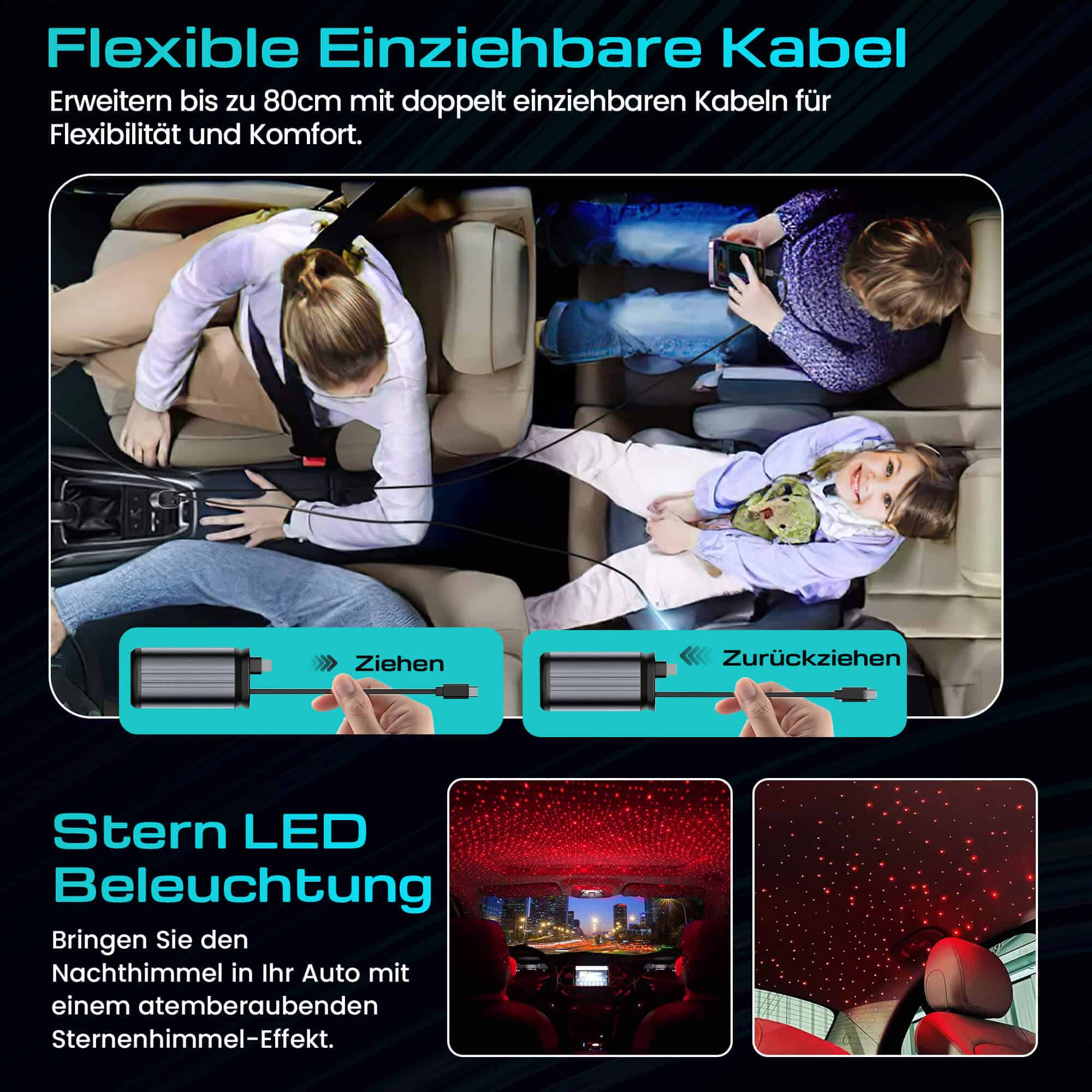 Das eingebaute LED-Sternenlicht projiziert ein faszinierendes Lichterlebnis an deine Autodecke – perfekt für entspannte Nachtfahrten!