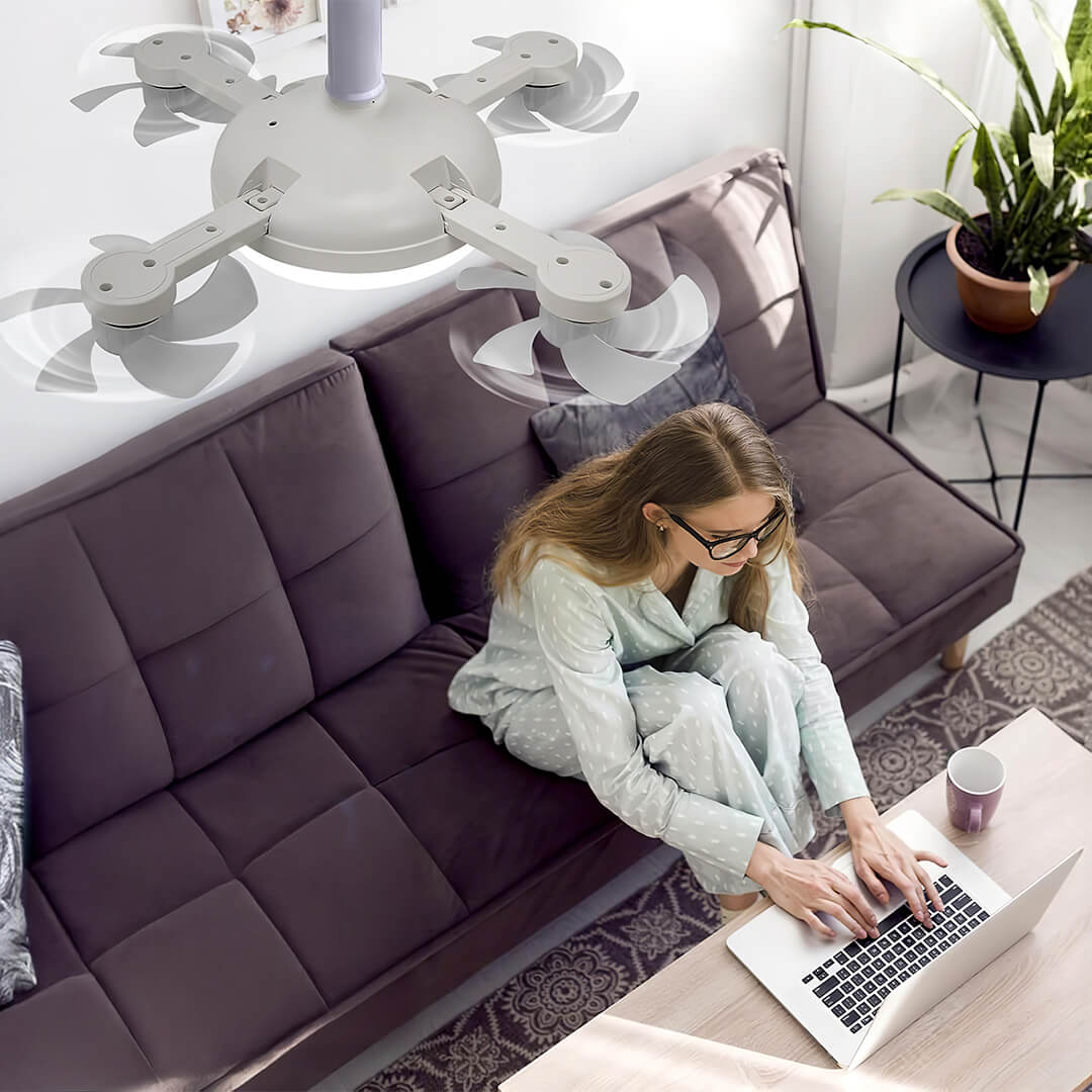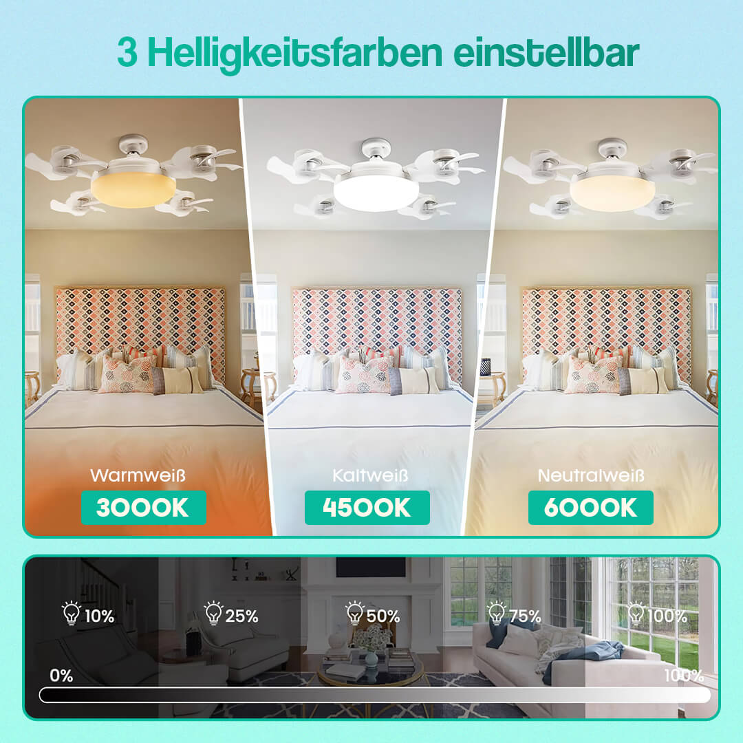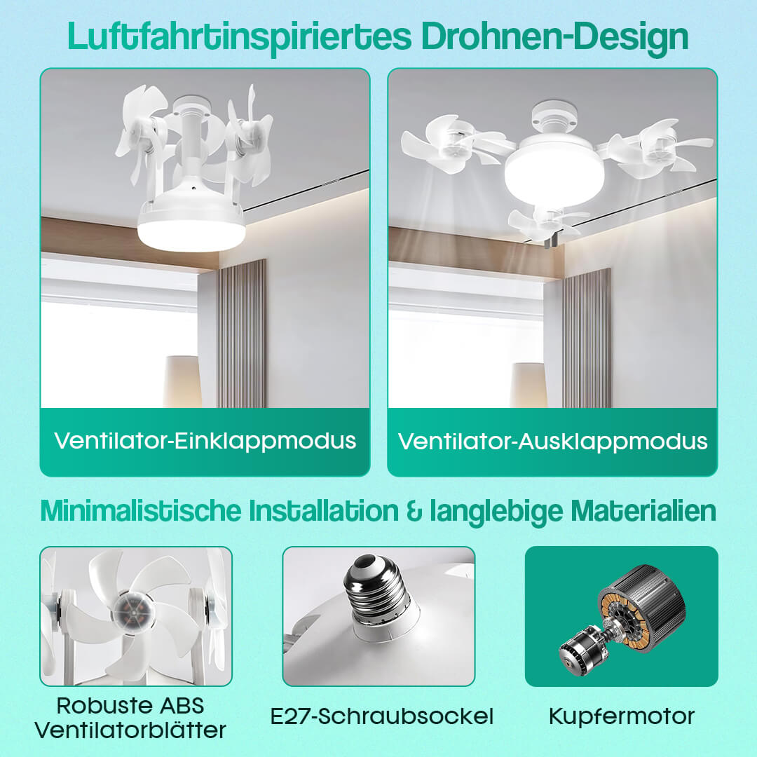 Diese intelligente Deckenventilator-Lampe sorgt in Sekunden für Kühlung und Helligkeit – genau so, wie du es brauchst. Ob beim Relaxen, Arbeiten oder Einschlafen: Du entscheidest.