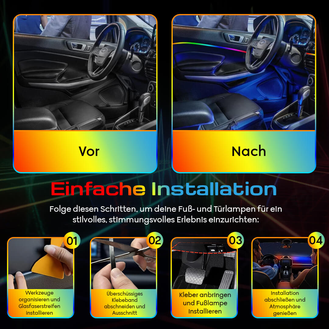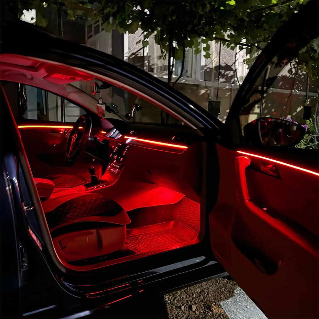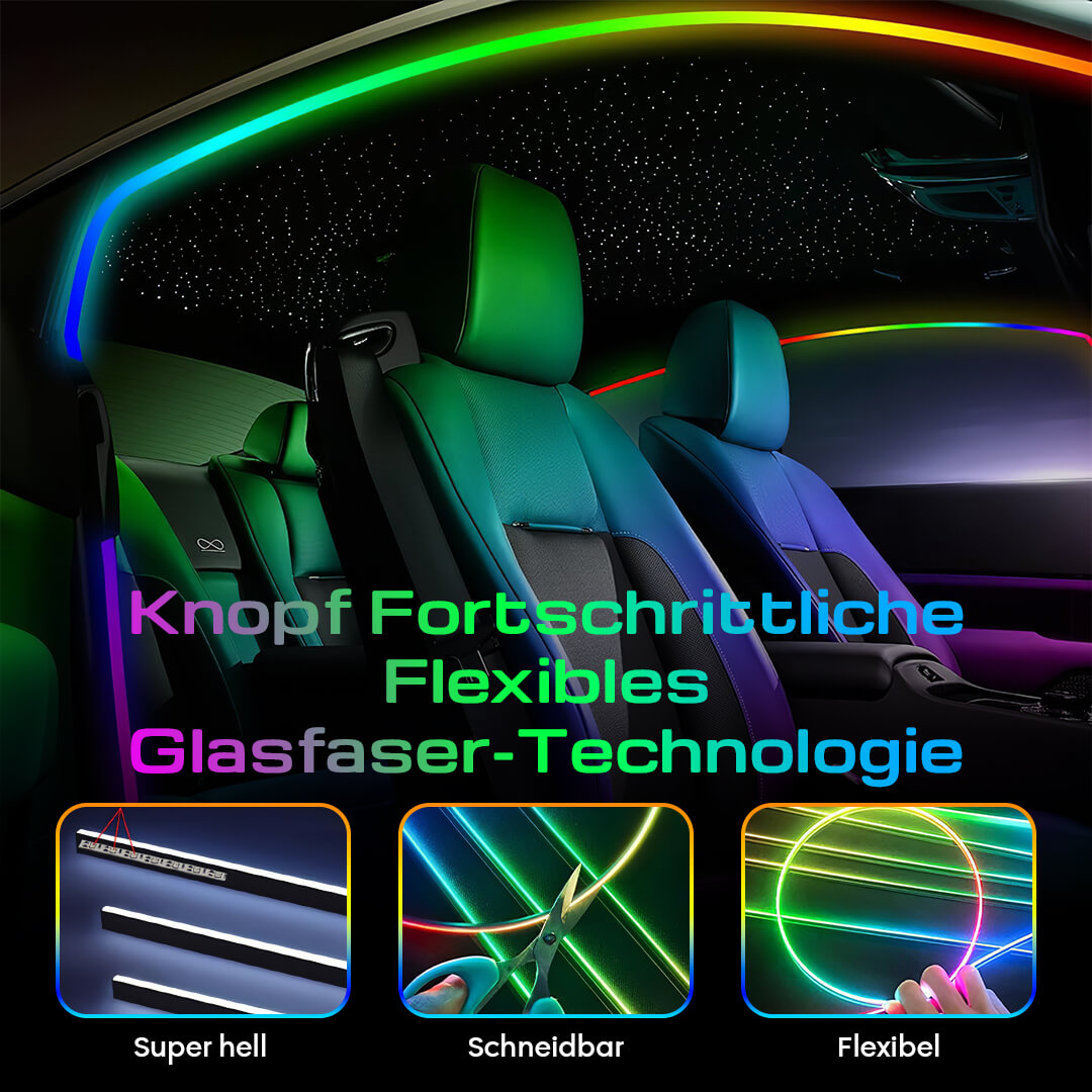 Erlebe, wie dein Auto sich in eine stimmungsvolle Wohlfühlzone verwandelt – dank optischer Glasfasertechnologie, die LED-Streifen mit Acrylfasern kombiniert.