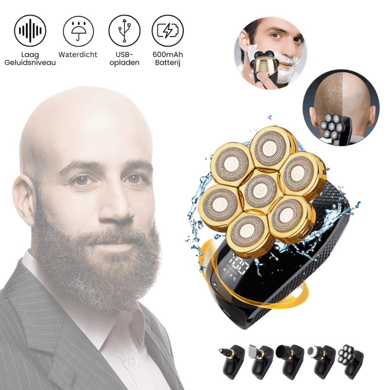 Dank der 7 flexiblen Scherköpfe und der 5-in-1-Funktionen ist er die ideale Lösung für Kopf, Gesicht und Körper. Leicht, wasserdicht und mit langer Akkulaufzeit – perfekt für zuhause und unterwegs.