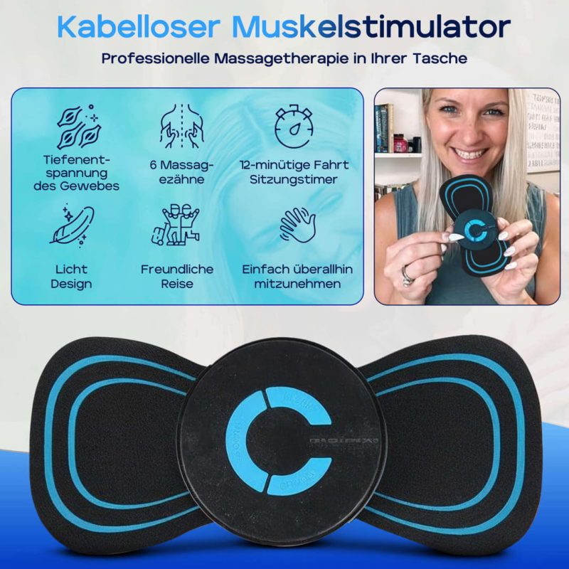 Erlebe die Kraft eines kabellosen Muskelstimulators, der sich wie eine professionelle Massage anfühlt und trotzdem in deine Tasche passt.