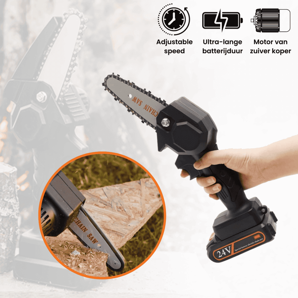 Diese Mini-Kettensäge ist dein verlässlicher Partner für jede Herausforderung im Garten, wodurch schwere, unhandliche Werkzeuge der Vergangenheit angehören.
