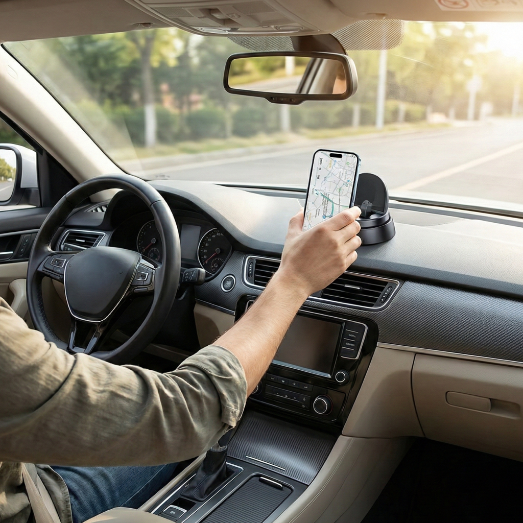 Keine wackeligen Halterungen, keine Saugnäpfe am Fenster – nur ein fester, aufgeräumter Platz für dein Handy, der jede Fahrt entspannter und sicherer macht.