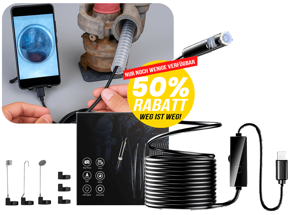 Ja – die Kamera ist IP67-zertifiziert, also perfekt für nasse Stellen, Abflüsse oder feuchte Mechanik geeignet.