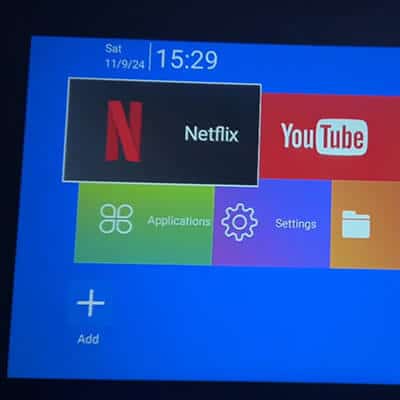 Öffne Netflix, YouTube oder eine andere App direkt über das Android-Menü auf dem Bildschirm.